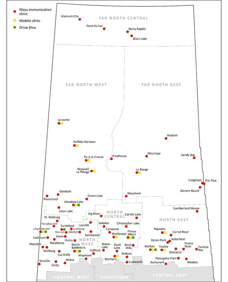 Duck Lake, meanwhile, will have a mass immunization walk-in clinic.
