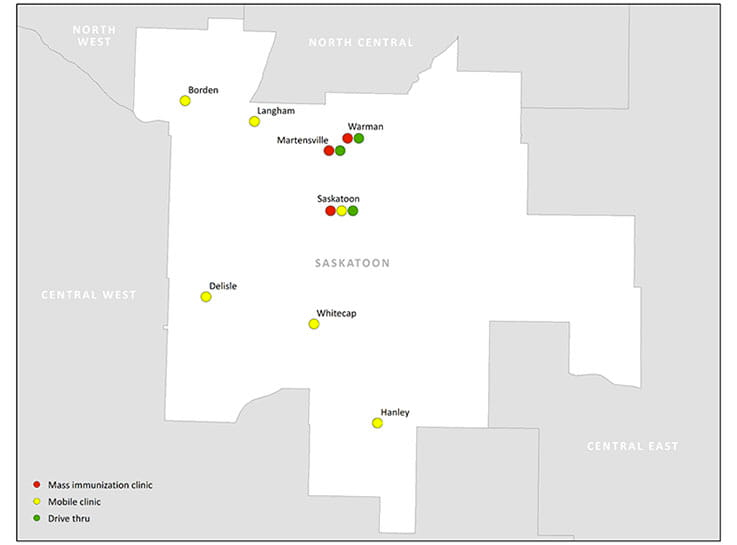 The communities of Borden, Delisle, Langham and Whitecap First Nation will have mobile vaccination clinics.