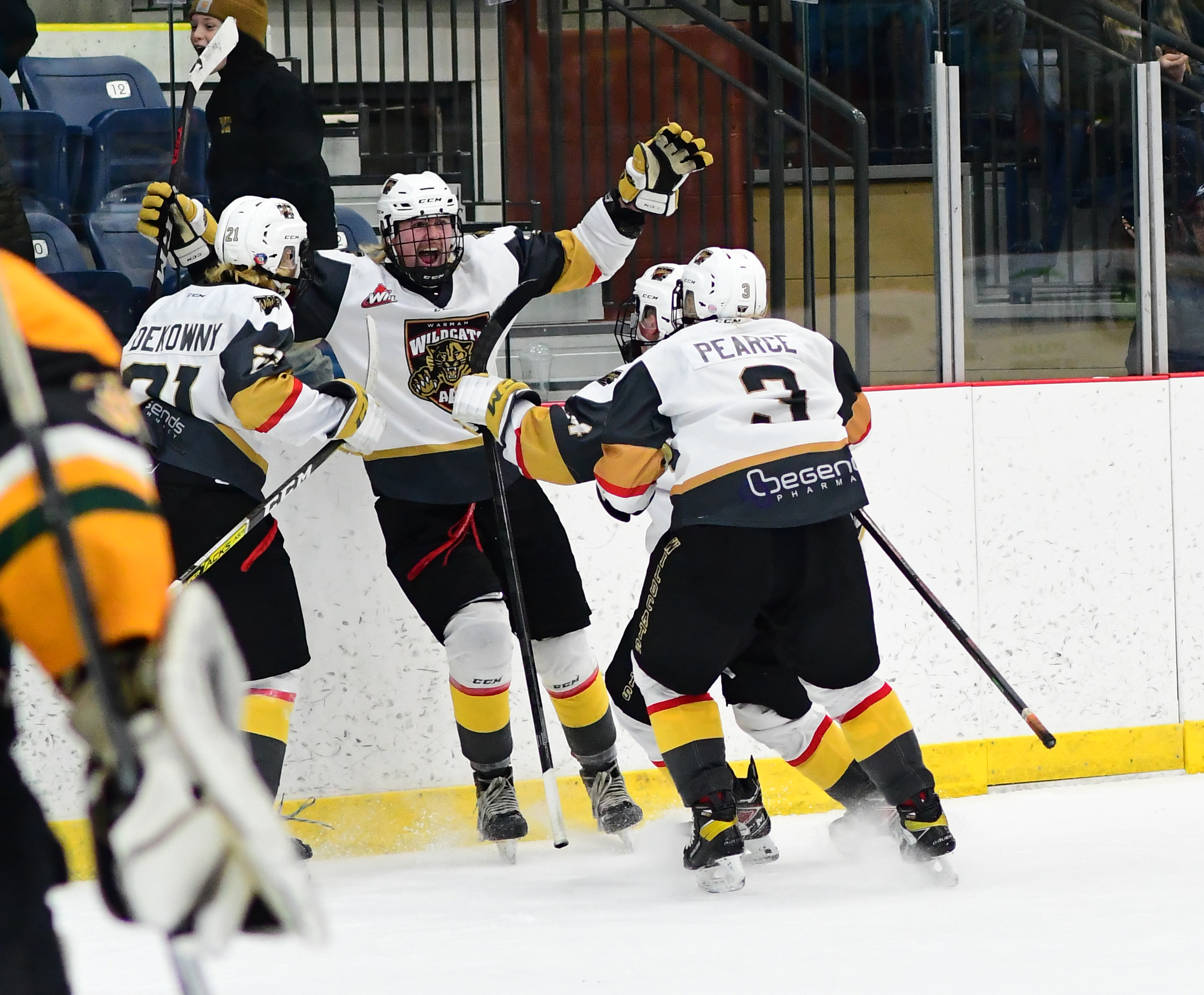 overtime to give the Warman Wildcats a 2-1 victory in a game played at the Legends Centre in Warman on March 11