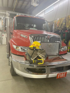 Mike Smith’s helmet, turnout gear and boots serve as a memorial to the dedicated firefighter