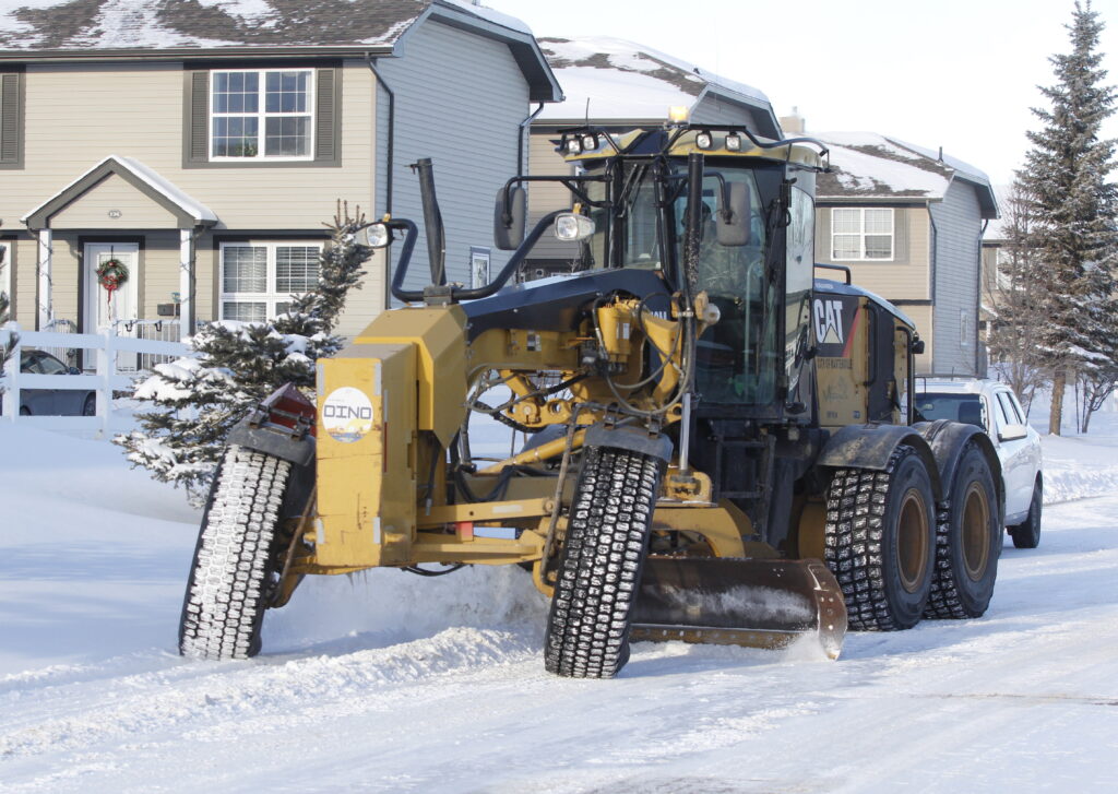 A snowplow pushes snow along 2nd Avenue in Martensville on Friday, December 12. Snow and ice removal was cited as a major barrier to accessibility within the 2026-2029 Martensville Accessibility Plan.