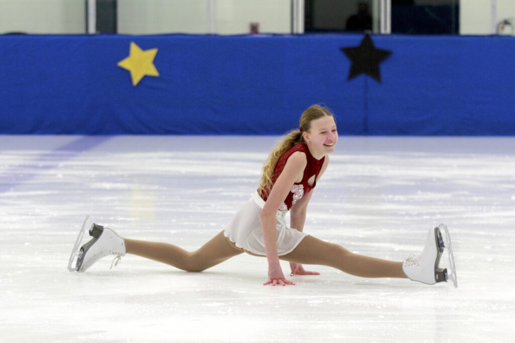Mya Redl performs a fairly difficult split while skating to “Sky Full of Stars.”